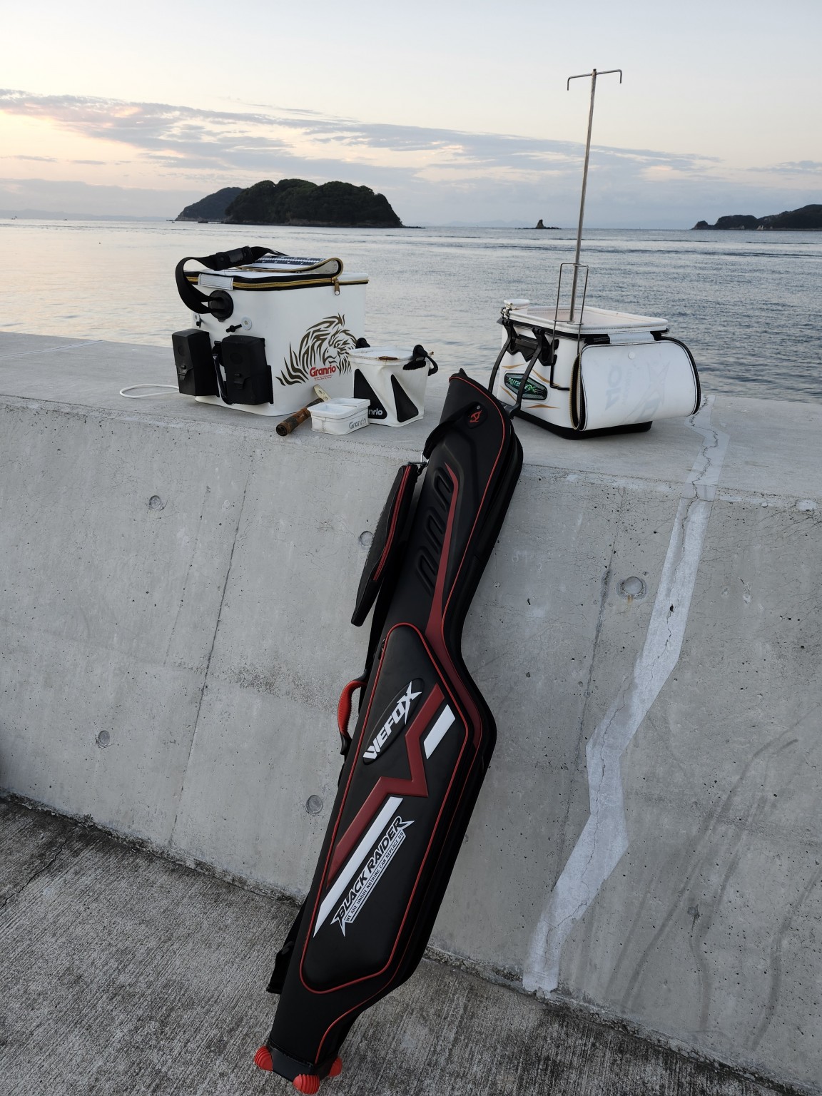 5時過ぎに出船して現地に着いてから釣り場を決めて、いつものようにV-FOXハードバッカンにアーチロング杓スタンドをセットしてから、リールインロッドケースⅡから竿を出して7時に釣り始めます。